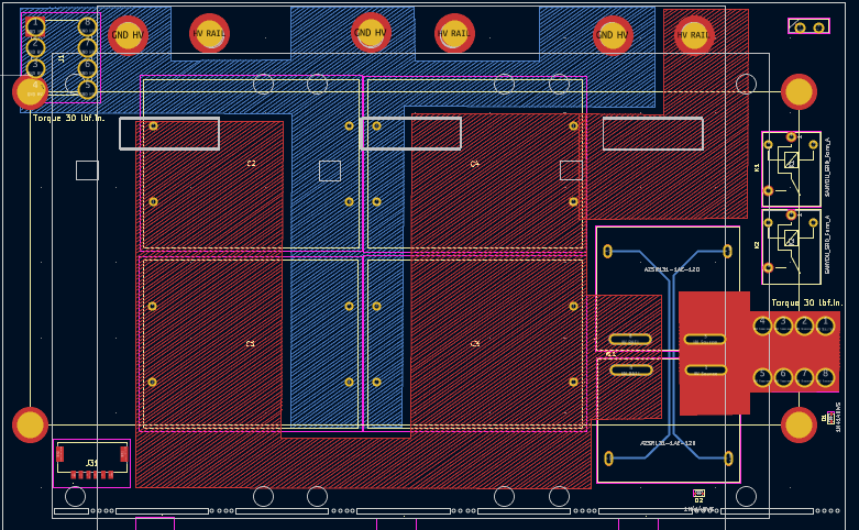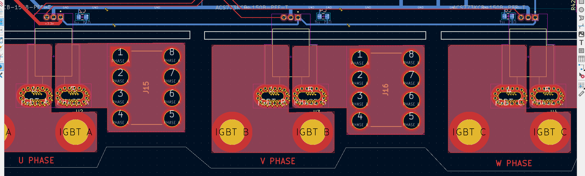 I am brining current from an IGBT to an inline current sense hall effect. Connecting them I am using a filled zone utilizng the front and back of the pcb.