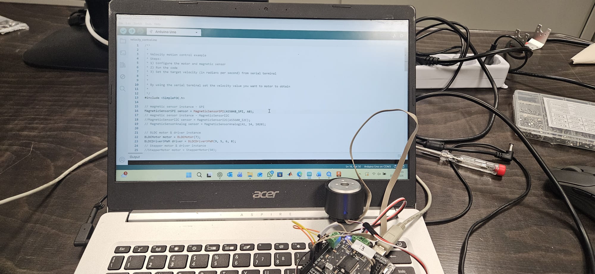 I’m currently using an example from the SimpleFOC library in Arduino to perform position control on a Micro 33.5 mm 2894 motor, together with an AS5048 SPI magnetic sensor.