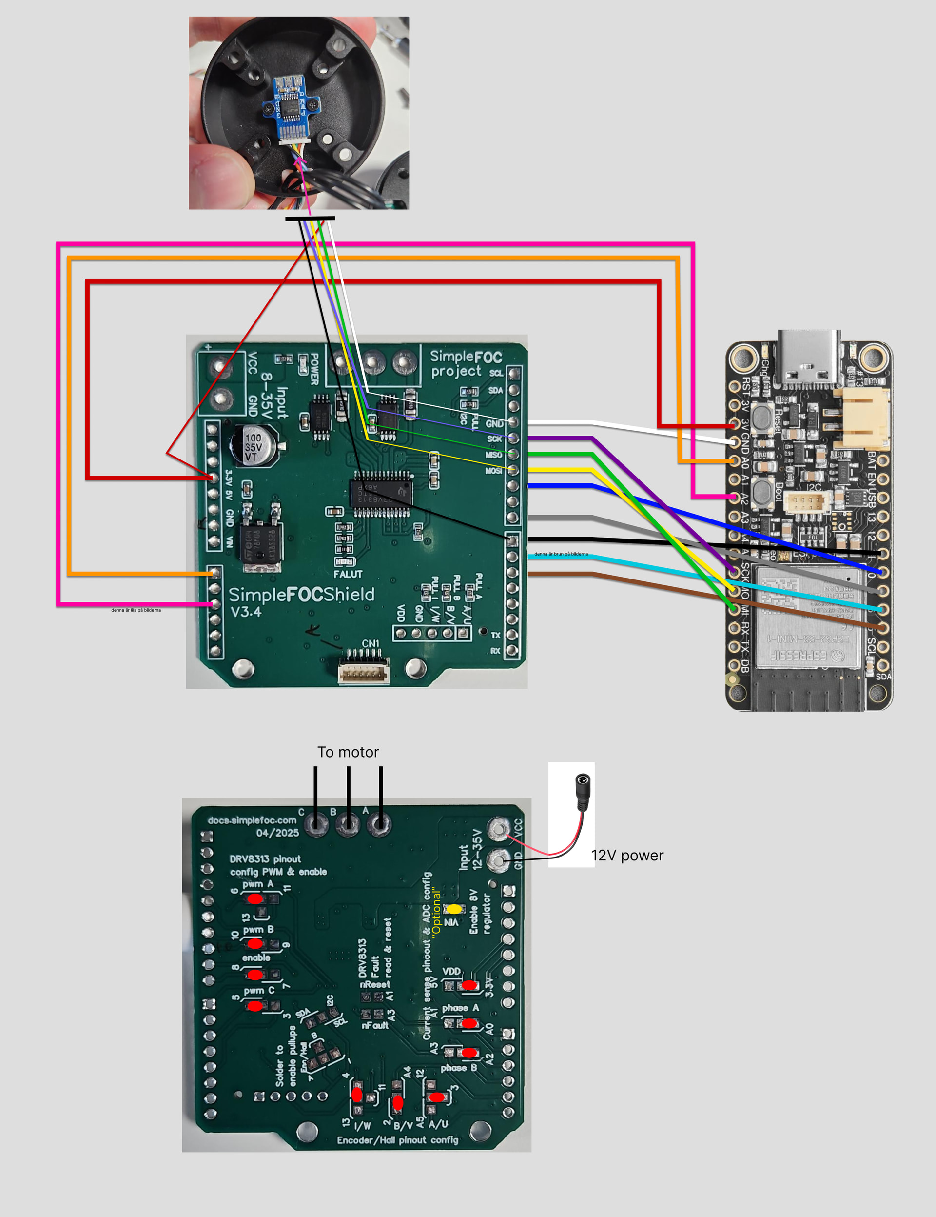 Hi, Thanks a lot for this more detailed description. I still struggle to see how to connect the SPI to the simpleFOC shield board. Do you have a photo how you connect these and to which pins? Thanks so much @Kai-Krause