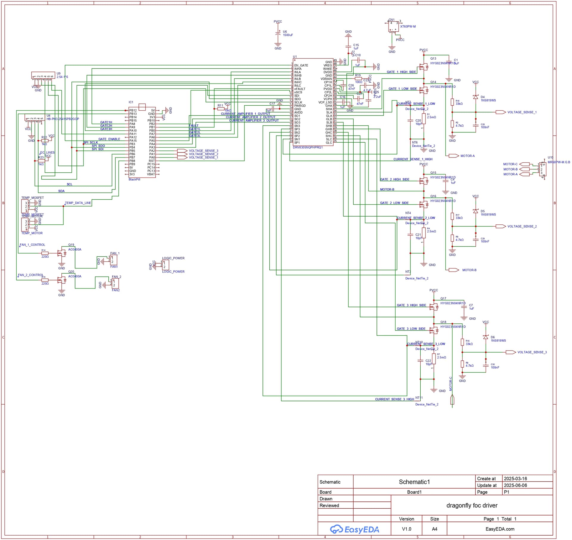Attached is the code and schematics of the driver(on which i know the mcu pins assigned to the low side phases wont work, this is fixed with some bodge wires on the real board.)