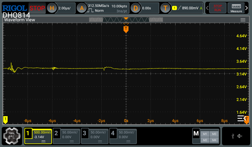 You can also try and measure the 3.3V output across the DRV8302 buck output capacitor (use the negative of the capacitor for the GND reference) and see if thereâs a significant voltage drop there or whether itâs localized on the STM32. Also the switch node of the buck might be interesting to look at (need to zoom in for that one).