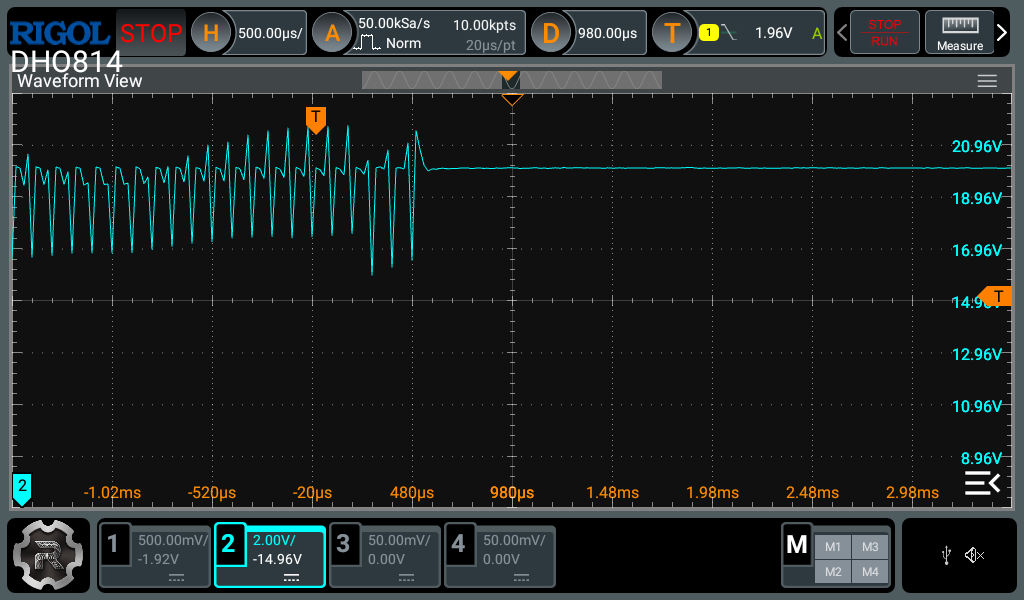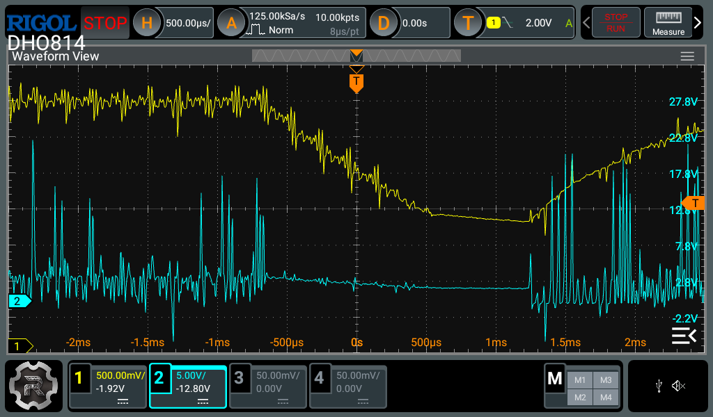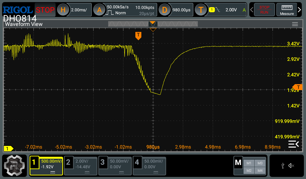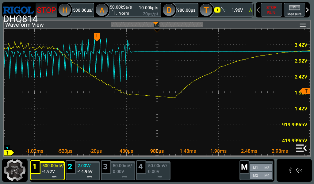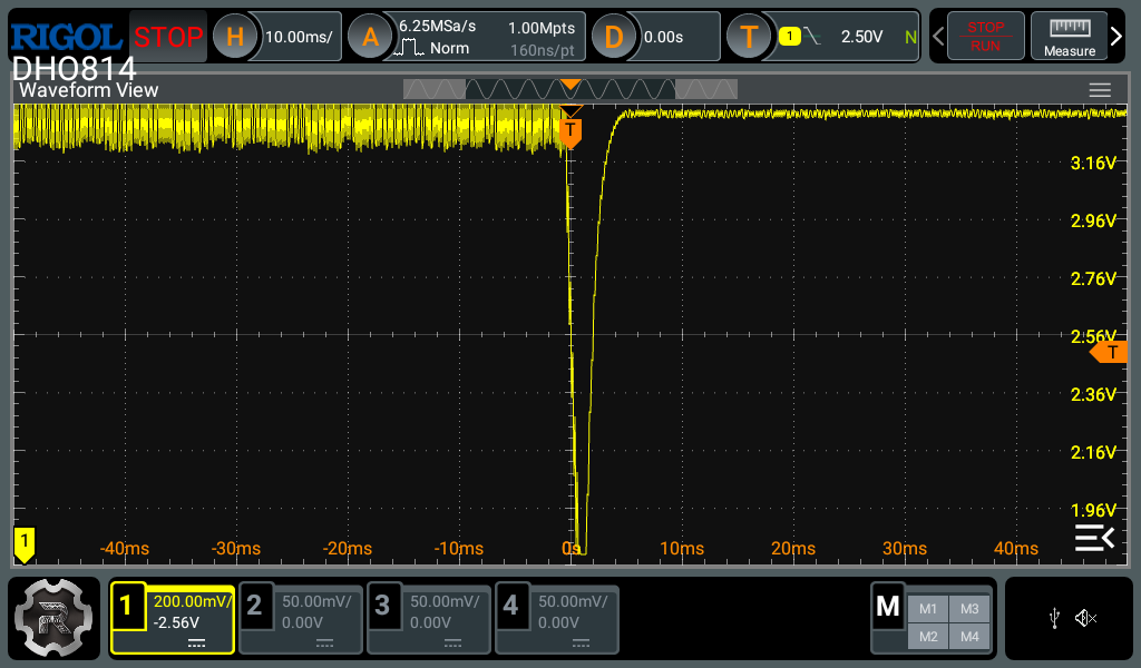 So it seems your previous results are invalid as you probably didnât trigger the scope at the point where the MCU reset happened. I can help you with how to use the oscilloscope correctly so you can provide the correct measurements next time.