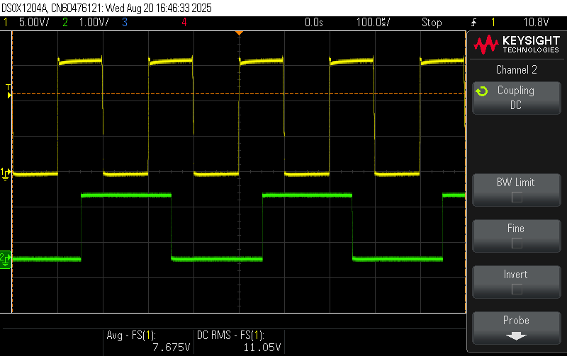 (In this experiment, I’ve reduced the PWM frequency to 5kHz to be sure that it was always centered)