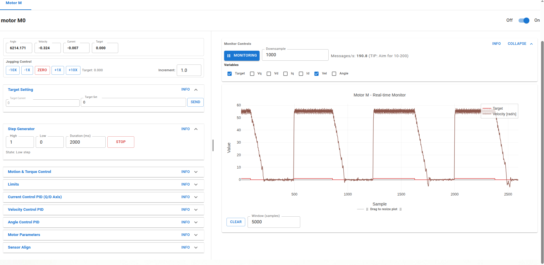 motor.tuneCurrentController() - Can call the sensor re-alignment in runtime:
