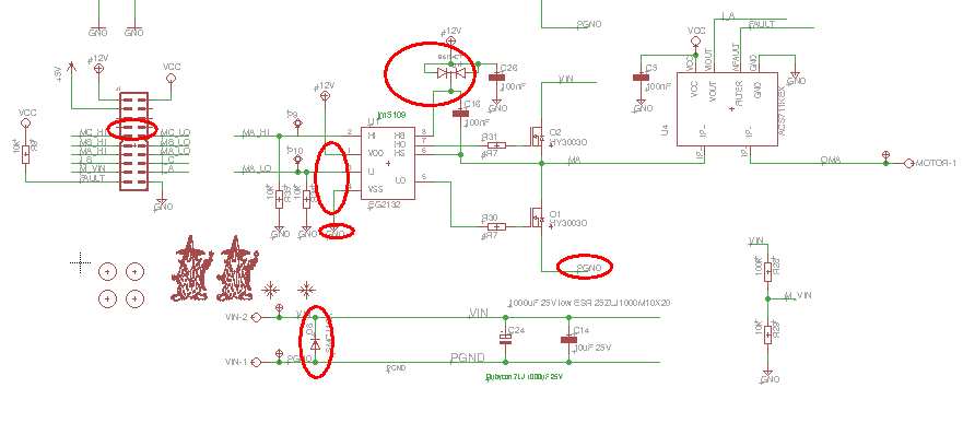 “where are caps” → You got me concerned…. Ooops did I forget. But I found them in the layout and then in the circuit as well: you can see C26 above. It is tactically placed as close as possible to the driver chip.