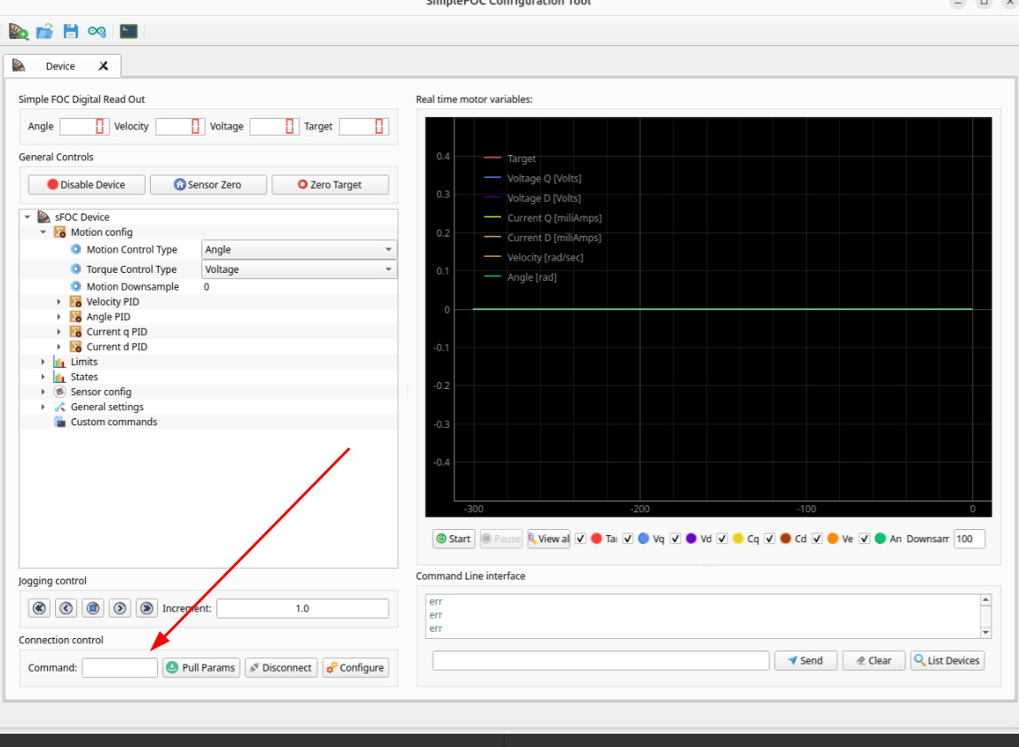 motor.monitor_variables = \_MON_TARGET | \_MON_VOLT_Q | \_MON_VOLT_D | \_MON_CURR_Q | \_MON_CURR_D | \_MON_VEL | \_MON_ANGLE; // monitor target velocity and angle