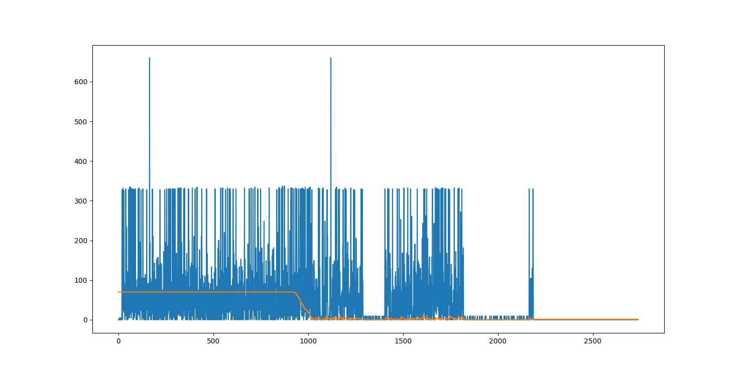 Here are my velocity calculations Vf in blue and Requested velocity Vd in orange. This is after PID tuning.