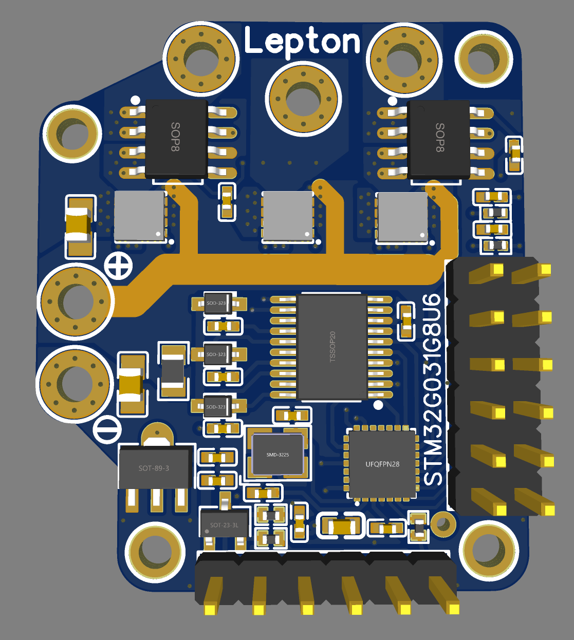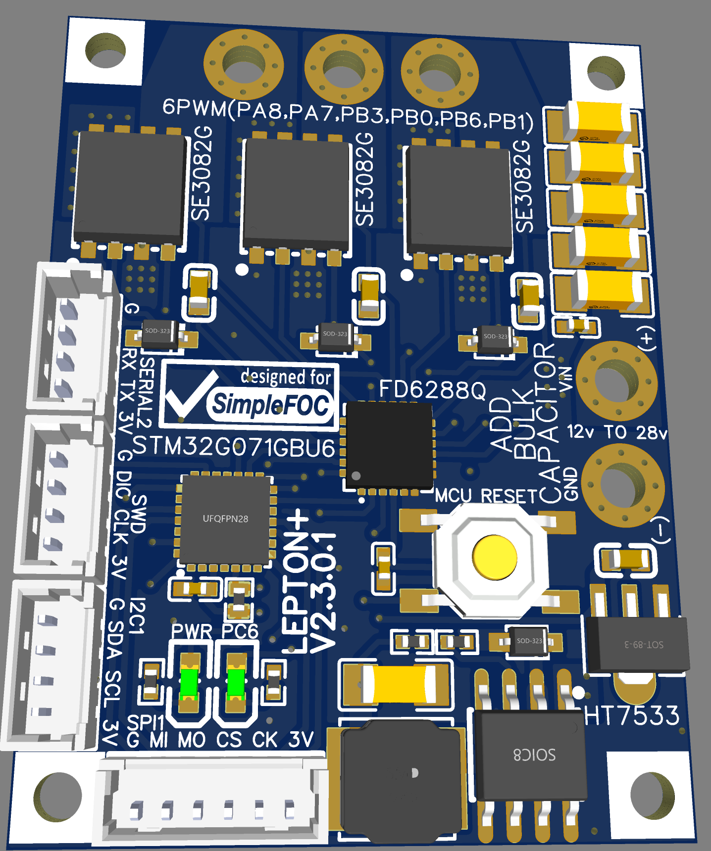 If we look at this forum, which I have browsed a lot, I do think the specs of the lepton with 2 layers and areas of copper you can flood with solder are in a very good place. We are usually talking about smaller motors and less than 50 volts. You definitely need a sensor with SimpleFOC so if it can be added to the back of the board that would make sense. Current sensing does not seem to be commonly used, but the real estate for the chips is cheap, as physical size does not seem to be a primary concern.