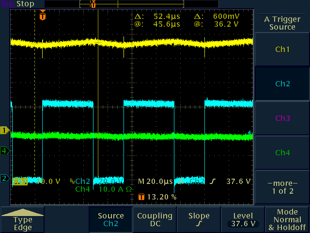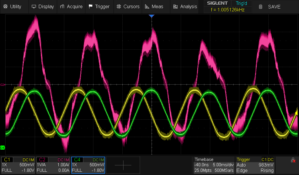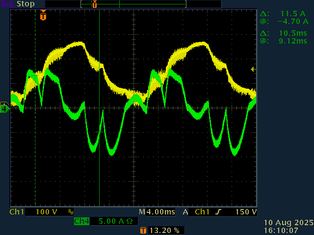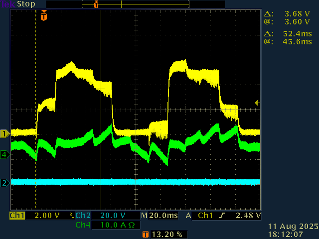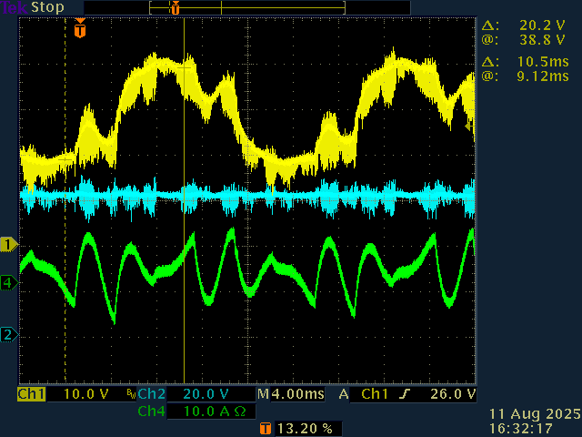 Where are you measuring this current, it looks more like the power supply current than the phase current…
