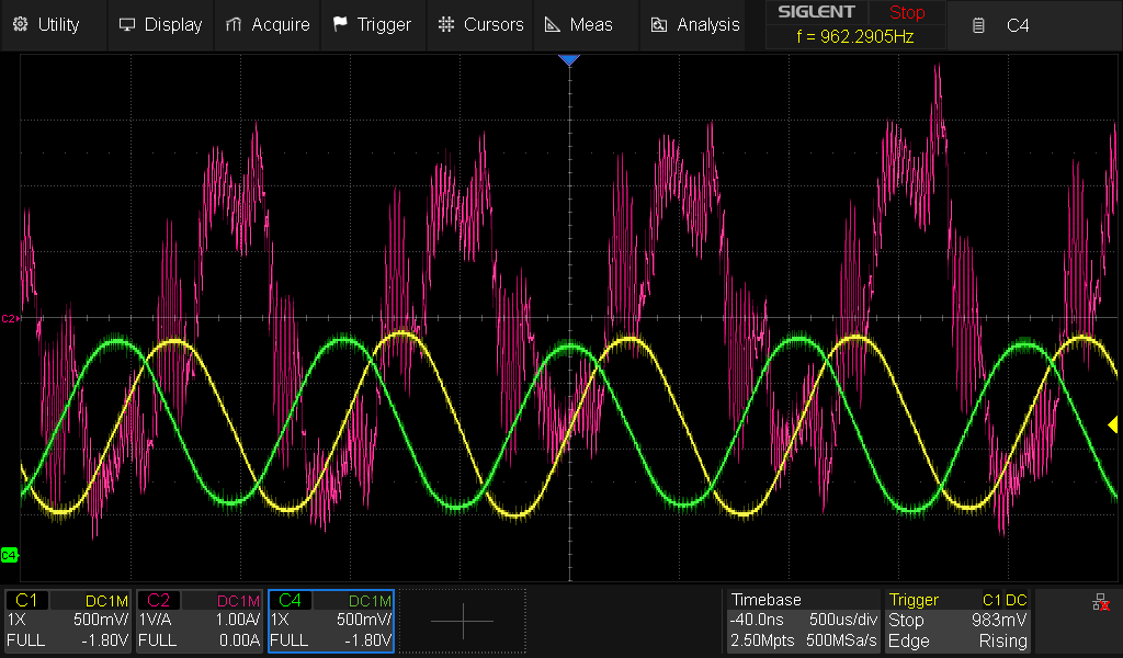 Another theory is that the position sensor is not very accurate, so the inaccuracies cause the FOC computations to be off, resulting in weird current shapes.