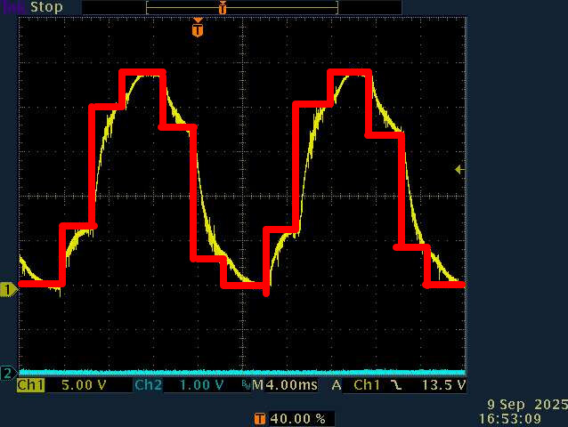 since almost the begining of my āknowledge ramp upā (verry steepy) with simplefoc, motor is very noisy. I finally found out why => excitation isnāt sinusoidal